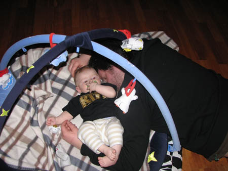 Efter en dag fylld av den vanliga dårskapen på jobbet slocknade jag i babygymmet med Alfred.