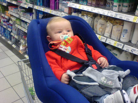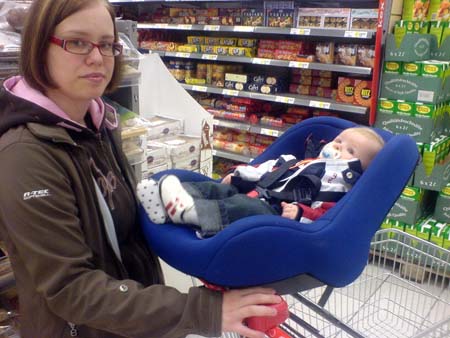 Slut juice och brist på friskluft så jag tog med mej Alfred till Ica, där charmade han brudar och jag handlade till kvällens korvstroganoff.