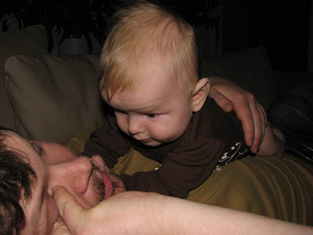 Fortsatt trevlig kväll med Wille och Pethra, Alfred ville inte riktigt somna så han fick vara med och busa ett tag.