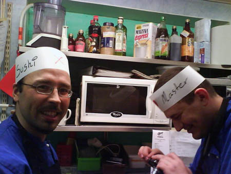 Alex och Jörgen fick agera sushi master och trainee för en dag och lyckades riktigt bra, jag petade i mej nitton bitar av det dom lagat, riktigt gott var det.