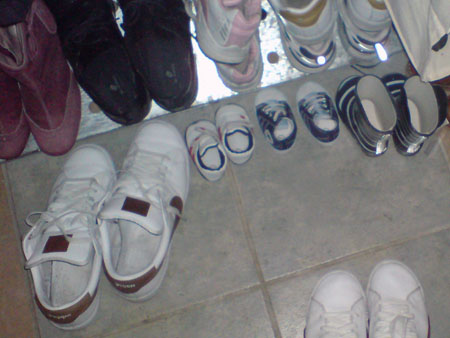 08:30 började mötet på jobbet, haha, jag vaknade 08:28 och hoppade upp som en raketa, men vart ändå tvungen att stanna till i hallen och fota för det var så fint med alla våra skor samlade.