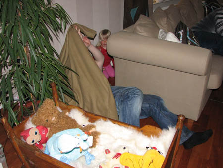 Julia byggde en koja som man fick bara vara i om tog med sej alla sina ben, så jag tog med mej dom och hälsade på en sväng.