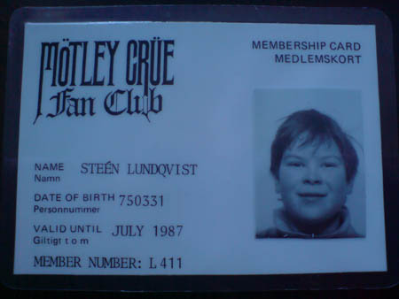 Haha, jag rotade runt hemma hos morsan och farsan och fick reda på att jag varit medlem nummer L411 i Mötley Crüe Fan Club 1986