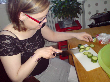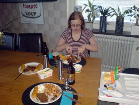Pethra gjorde kycklingsallad med världens största kniv, sen har det tjurats med Alfred som vägrade välling och fick gröt istället. Ikväll hoppas jag på att få se ett par avsnitt av "Heroes" men får se ifall kungen tillåter det.